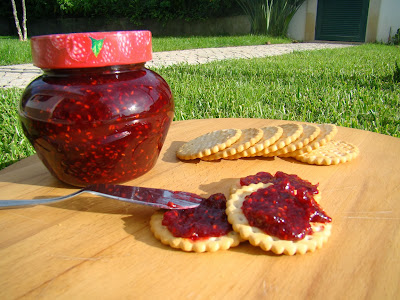 Tal como prometido na receita anteriormente publicada, trago-vos a receita do Doce de Framboesa que fiz nas férias. Como nunca tinha feito um doce diferente do de tomate, resolvi ir à procura na blogosfera algumas dicas que me pudessem ajudar nesta aventura sem ajuda da mãe.